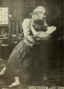 Middleton and Michelena bought their bankrupt film company for "a few thousand dollars" in 1917 and renamed it Michelena Studios.[15] Their new company was called Beatriz Michelena Features, and shooting began on their next feature-length film, Just Squaw. Michelena's lead character was a white woman raised by American Indians, a woman who does not realize her racial heritage until after she falls into forbidden love with a white man. The movie played for only a week in San Francisco in 191, and did not return a profit.