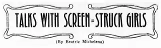 27. 1 2 Michelena, Beatriz (May 14, 1916). "Talks with Screen-struck Girls". Prescott Journal-Miner. p. 2. Retrieved April 13, 2010.