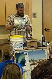 Beau Carey (born 1981) is an American painter and educator based in Albuquerque, New Mexico. He embeds himself in challenging environments to experience and record a sense of place. Carey has traveled extensively to remote places to paint. He has worked en plein air in remote areas of New Mexico, the Arctic Circle in Norway, was the first wintertime artist resident in Denali National Park, and recently spent three weeks on Rabbit Island in Lake Superior, where he was awarded one of four funded residencies.[1] Many of his landscape paintings explore contemporary themes of globalization and environmental concerns.[2]