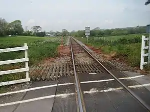 ![]() The site of the station, looking north from the level crossing, in 2014 | |