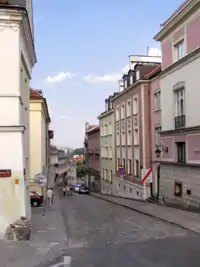 The Bednarska Street in Warsaw, Poland, is a street in Warsaw's Śródmieście borough, and is the narrowest street in Warsaw (5.3 m). The street received its current name before the year 1743, stemming from its upper part consisting of houses inhabited by artisans, probably mainly by coopers (bednarz being the Polish word for cooper). Officially, the name was given in 1770.[1][2]