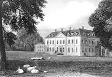 Further changes (e.g. the addition of much of the façade and of the two wings) were made in the 18th century; a Library was added at the start of the 19th century, and the courtyard covered over in 1854 (it is now the Great Hall). In 1880 the tenant was Mr W.B. Greenfield, who established there in that year one of the three leading herds of pedigree Aberdeen Angus cattle in England.[5] In 1908 he was the tenant of Haynes Park, Bedfordshire.[6]