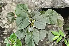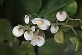 Begonia elnidoensis is an endemic species of Begonia discovered in El Nido, Palawan, Philippines.[1][2] The species was compared to Begonia wadei, in that both species have thick-trunked stem, differing in the widely to very widely ovate or subtriangular leaves, with the latter having obliquely ovate leaves, 3-4 secondary leaf veins where the latter has 6 on each side of the midrib, with glabrous petioles compared to latter having puberulous to tomentose, an inflorescence measuring 20–40 cm in length compared to only 6–20 cm, and the differently-sized bracts and capsules.