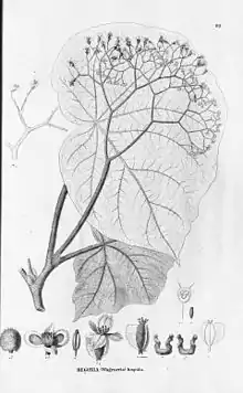 Begonia hispida, the piggyback begonia (a name only applied to individuals with leaflets), is a species of flowering plant in the family Begoniaceae, native to southeastern and southern Brazil.[1] They are occasionally cultivated due to their "piggyback" leaflets which grow directly from veins in the main leaves.[2][3] The piggyback mutation is also seen in Arabidopsis.[4]