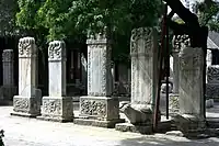 The temple is organized around three main courtyards, it has 376 rooms and covers 4.7 hectares. The courtyards hold a collection of stone tablets. About 140 stone tablets dating from the Yuan, Ming, and Qing dynasties as well as from the early republican era of China are thought to have once stood in the temple, 90 tablets remain today. Among the remaining tablets is a Yuan dynasty tablet with calligraphy by Zhao Mengfu. This tablet is the only remaining piece in a set of four, its inscription give an account of the life of the temple founder Zhang Liusun and consists of 2786 characters in total.