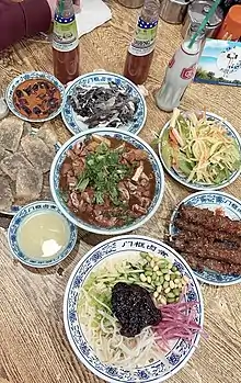 Many dishes in Beijing cuisine that are served as main courses are derived from a variety of Chinese Halal foods, particularly lamb and beef dishes,[5] as well as from Huaiyang cuisine.
