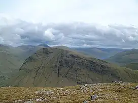 ![]() The steep western face seen from Beinn Odhar 3 km to the SW. | |