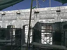 An inscription runs around the hall of the west wing of the house quoting hemistichs from the Hamziyya, a poem that praises the prophet Muhammad, composed by the Sufi poet Imam Muhammad al-Busuri (d. 1294).[12] The lines translate to read, "I ask for your protection. My heart which has sinned is like air; I hold on to the rope of your love like one smitten; God will keep me from harm when I take refuge in you; We resort to you in the most scorching of matters."