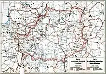 Beginning in the 1890s, Belarusian nationalism began to re-emerge. Francišak Bahuševič's 1891 call for Belarusians to identify with their nation was followed by the foundation of Nasha Niva in Vilnius in 1909.[18] The Belarusian Socialist Assembly, a left-wing political party calling for the independence of Belarus, was founded in 1902.[19] Attempts were also made to restore the Uniate Church, with Metropolitan Archbishop of the Ukrainian Greek Catholic Church Andrey Sheptytsky making a secret visit to Belarus at the behest of nationalist leaders Ivan Luckievič and Anton Luckievich, though nothing developed from it. Belarusian nationalism found particular growth in northern and central Belarus, where religious plurality was more common than the Catholic West and Orthodox East.[20] However, nationalists faced the problems of apathy and hostility from their countrymen: With the majority of the intelligentsia becoming convinced of Belarusian nationalism only in the 1890s, few Belarusians, the majority of whom were peasants, had any unique Belarusian national consciousness, and primarily identified with Poland or Russia, depending on their religion.[18] Nationalists were also opposed by the local intellectuals of peasant and clerical origins; those who were not rooted in the old Polonized aristocracy or gentry. These intellectuals are referred to as West-Rusists or Westrussianists.[14][21] One of the leading voices of the West-Rusists was historian and journalist Lukyan Solonevich, the father of anti-Soviet dissident and Tsarist philosopher Ivan Solonevich, as well as author Boris Solonevich.[21]