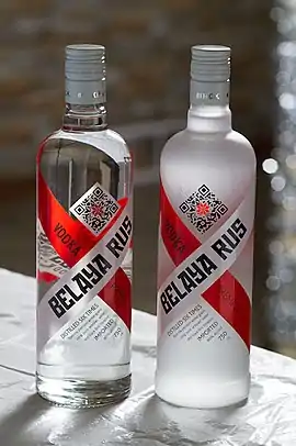 Belaya Rus (Belarusian: Белая Русь) is a brand of vodka distilled in Belarus from a blend of premium hard winter wheat (25%) and rye (75%) using pure artesian water drawn from wells 300 m (1,000 ft) deep. The alcohol content of this spirit is 40%, (eighty proof), priced similarly to Smirnoff and Svedka. "Belaya Rus" literally translates as "White Ruthenia".