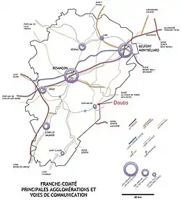 Belfort in the road and train network of Franche-Comté
