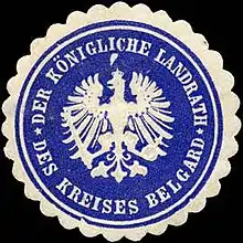 In Pomerania, which had belonged to Brandenburg-Prussia since 1648, a district reform was carried out in 1724. The number of districts and associated district councils were significantly reduced in order lessen the strong territorial fragmentation that had arisen as a result of the complicated aristocratic possessions in Eastern Pomerania. The existing Belgard and Polzin districts were merged into Belgard-Polzinscher district on January 1, 1725.[1] The district included the towns of Belgard and Polzin, the royal office of Belgard, and a large number of noble villages and estates.[2][3]