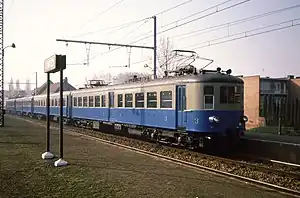 NMBS/SNCB Class AM35 (Automotrice 35 French for Electric Multiple Unit (EMU) – 1935 [after their year of construction] - in Dutch they were MS35, the MS standing for MotorStel) were electric multiple unit trains operated by the National Railway Company of Belgium (NMBS/SNCB). First used in service on May 5, 1935 (a century to the day after the founding of the Belgian Railways) along the first electric line between Brussels and Antwerp.[2]