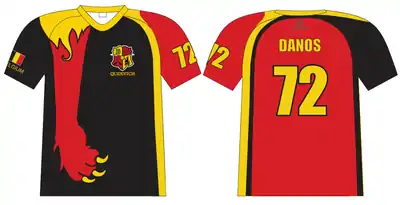 The design of the 2014 jerseys were put through a popular vote open to any interested Belgian quidditch player. The majority chose the option created by Julie-Anne Weber, who designed the paw, and Cory Faniel, who dealt with the colour layout.[8]