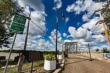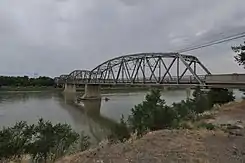 Completed in 1926 at a cost of $305,000, the Bell Street Bridge crosses the Yellowstone River in Glendive, Montana. Designed by the Montana Highway Commission and built by contractor Boomer, McGuire & Blakesley, the 1,352 feet (412 m) long, 20 feet (6.1 m) wide bridge consists of six Warren through truss spans, each roughly 219 feet (67 m) long, and a concrete approach span about 38 feet (12 m) long. It was listed on the National Register of Historic Places in 1988.[2] At one time the main highway bridge over the river, Montana DOT rehabilitated and converted it for pedestrian use in 1992 when the bridge on the I-94 Business Loop was built 300’ to the north.[3]