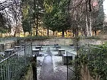 The park is home to Bellahouston Sports Centre and the Palace of Art Sports for Excellence Centre, the latter consisting of a building retained from the 1938 exhibition.[3] The Glasgow Ski Centre houses an artificial ski slope, which was adapted in the early 1970s from the seating area around a former bandstand, and further extended in 2008. The bandstand has been retained as the clubhouse and equipment store. There are also a bowling club, all-weather hockey pitches, cycling facilities, an adventure playground, and an orienteering course.[4] In March 2006, construction began on a cycling track adjacent to Bellahouston Drive. In the past there were many football pitches and three large changing rooms, which have since been removed. Since 2018 the park has also been the site of the Prince and Princess of Wales Hospice.[5]