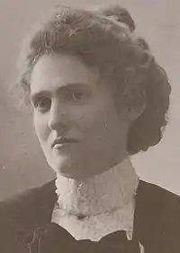 Johnson was a charter member of the Photographers' Association of Missouri in 1894. At the group's statewide convention that year, Johnson's photographs won third place out of thirty-five entries, and missed first place by a narrow margin.[1] In 1899, she won a gold medal at the Association's state convention, and was elected the group's treasurer.[7][8] After a fire destroyed her studio that same year, she worked briefly in a photography studio established by local cigar maker, C.S. Robertshaw.[5] By 1901 she was again advertising under her own name. In 1902, she opened an elaborate new studio on the floor above the jewelry store of her brother-in-law, R. Manning Walker.[5]