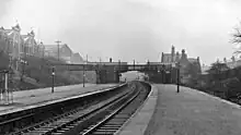 The original station had four platforms. The main building with booking office and parcels office was located on the west side of the railway and the platforms were linked by a raised footbridge.