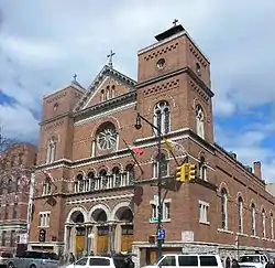 Among the neighborhood's array of Italian restaurants and markets, there are multiple points of interest. Our Lady of Mount Carmel, a Roman Catholic church on E. 187th Street at the corner of Belmont Avenue, was constructed in 1906.[25] The Arthur Avenue Retail Market, which extends the block between Arthur Avenue and Belmont Avenue, features an array of Italian meats, cheeses, and other goods, as well as cigars, a bar, and a dining area.