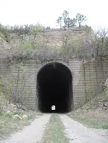 The Belmont Tunnel is a 698-foot (213 m) long railway tunnel near the ghost town of Belmont about halfway between Crawford and Marsland, Nebraska, in western Dawes County.[1][2] It was built by the Chicago, Burlington and Quincy Railroad in 1888-1889 and was used regularly until it was bypassed in 1982. It is the only railway tunnel ever constructed in Nebraska.[3]