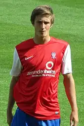 Born in Barrow-in-Furness, Cumbria,[5] Davies signed with the youth system at Preston North End after being spotted playing for Furness Rovers aged 11.[6] He made his debut for the first team in a home 2–2 draw against Coventry City on 26 January 2013 at the age of 17 years, completing 83 minutes before being replaced by David Buchanan.[7] During the match, he provided an assist for Nicky Wroe's 60th-minute equaliser and picked up a yellow card for a foul on Cyrus Christie.[7][8] He drew praise from Preston manager Graham Westley, who likened Davies' transition into the first team to that of George Boyd at Stevenage.[8] Davies kept his place for the next match at home against Shreswbury Town.[7] His second match did not go as well as his debut, conceding a 90th-minute penalty (for which he picked up a booking), fouling Marvin Morgan in the penalty box.[7][9] He was substituted shortly after for Paul Huntington, with Preston to ultimately lose the match.[9] He signed a one-year professional contract at Preston, with an option to extend for a second year, in May 2013, after being named the club's Scholar of the Year for the 2012–13 season.[10]