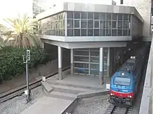 Ben Gurion Airport railway station (Hebrew: תחנת הרכבת נמל התעופה בן גוריון, Tahanat HaRakevet Nemal HaTe'ufa Ben Gurion) is an Israel Railways station located in the lower level of Ben Gurion International Airport's Terminal 3. The station opened on 10 October 2004, together with the opening of Terminal 3.[2][3] The railway line extending to the northwest from the station connects it to Tel Aviv and points north, while in the other direction from the station the railway splits south to Lod and southeast to Modi'in and Jerusalem.
