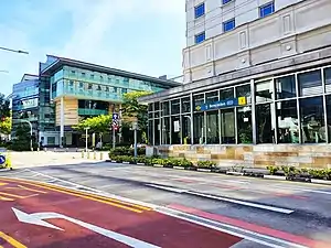 At the surface, Bencoolen Street was transformed into an enhanced pedestrian walkway.[13][24] Two of the four lanes are permanently closed to make way for a communal space, which includes a wide footpath for pedestrians and a bicycle lane. The transformation was part of Singapore's government Walk-Cycle-Ride initiative, which was aimed to make the country "car-lite" and allow more opportunities to walk and cycle.[25] One of the remaining lanes on the street was converted into a dedicated bus lane.[13][26]