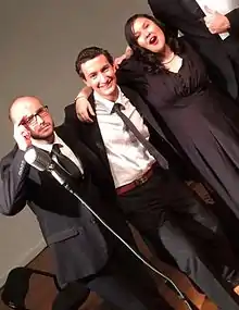 ![]() Mackay (centre) with Great Detectives of Old Time Radio Live cast members Eden Trebilco and Jennifer Barry | |