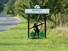 Bentley is a village and civil parish in the East Hampshire district of Hampshire, England. The parish has changed little over centuries and currently measures 2,299 acres (9.30 km2), the same size it measured in 1875.[1]: 33 when the population was 731 The village is north of the A31 road between Farnham and Alton, about five miles (8 km) southwest of Farnham and six miles (10 km) northeast of Alton. The village is served by Bentley railway station, which is about one mile (1.6 km) to the south, in the parish of Binsted against Alice Holt Forest.