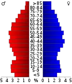 In the county, the population was spread out, with 22.00% under the age of 18, 7.00% from 18 to 24, 26.20% from 25 to 44, 27.00% from 45 to 64, and 17.70% who were 65 years of age or older. The median age was 42 years. For every 100 females there were 93.80 males. For every 100 females age 18 and over, there were 91.40 males.