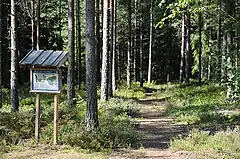 The nature reserve consists of a rocky plateau or hill and its surroundings. Large patches of bedrock dominate the hill, where Scots pine grow, often in the form of krummholz.(some specimen are as old as 250 to 300 years). In the south-western part of the nature reserve, moraine characterises the geology, and here the pine trees grow taller and stronger. Towards the north, spruce instead dominate the forest. The whole area also has plenty of coarse woody debris, which is beneficial for the area's biodiversity. The forest is rich in mosses and lichens, and the protection of the moss Buxbaumia viridis is one of the explicit aims of the nature reserve.[1]