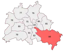 Berlin-Treptow-Köpenick is an electoral constituency (German: Wahlkreis) represented in the Bundestag. It elects one member via first-past-the-post voting. Under the current constituency numbering system, it is designated as constituency 84. It is located in southeastern Berlin, comprising the Treptow-Köpenick borough.[1]