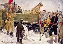Although the desire to neutralize Russia was acute, the participants were unable to reach a consensus on the feasibility of dispatching additional pacifist agitators to Russia. As of March 27th, multiple trains containing Bolshevik and Menshevik leaders, such as Lenin and Julius Martov, had already departed Switzerland for Russia with the Reich's approval.[10][11][12]