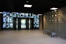 The entrance to the museum has security cameras peering down on the visitors, setting the scene for the entire facility as substantive focus of the exhibition is on data acquisition in the Internet Age.[9] These security cameras highlight the issue of surveillance, data and security which effects every individual in the modern world of the 21st century. Interactive activities in the museum have the ability to stimulate visitors’ senses so that they feel fully immersed in the experience.