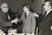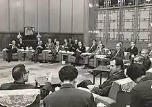 In 1982, with Lee Huebner,[37] the publisher and CEO of the International Herald Tribune, he organized the meeting of 300 businessmen, bankers and diplomats from 35 countries with members of the French Socialist government including Pierre Mauroy, Prime minister, Michel Rocard and Laurent Fabius, Jacques Delors, Jacques Attali, representing President Mitterrand, trade union leaders, members of parliament and two panels of international bankers and industrialists. The conference was covered by 200 journalists from 21 countries, 17 radio stations and a pool of 19 televisions.[38][39][40][41][42][43]
