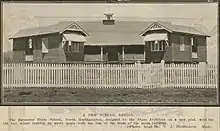 Berserker State School's first school building had two wings at an acute angle to the front of the main wing, 1917