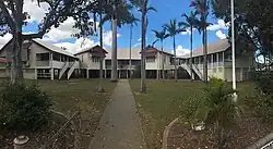 Berserker Street State School is a government primary (Preparatory to Year 6) school for boys and girls at 128–140 Berserker Street (23°21′55″S 150°31′48″E / 23.3654°S 150.5299°E / -23.3654; 150.5299 (Berserker Street State School)).[17][18] It includes a special education program.[17] In 2015, the school had an enrolment of 490 students with 38 teachers (36 full-time equivalent).[19] In 2018, the school had an enrolment of 516 students with 39 teachers (37 full-time equivalent) and 42 non-teaching staff (28 full-time equivalent).[20] The 1917 building with the unusual design is still extant at 2021.[21]