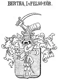 The Bertha de Felsőőr family (or Felső-Eőr in the Middle Ages) is a still existing Hungarian noble family from Vas county, who moved to Sopron and Zala counties also. The family received noble title in exchange for his service as a border guard at Oberwart (Felsőőr). The family's nobility was confirmed on July 1, 1327, by Charles I.[1][2][3] The first documented family name version (felső-eőri Bertha) was on January 18, 1582, by Rudolf II in Pressburg, when the family members were Márton, Mihály and Ferenc Bertha.[4][5][6][7]