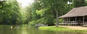 The camp was built in approximately 1900 by Nashville social worker, Fannie Battle[2] to provide a vacation and convalescence facility for impoverished mothers and their children, and eventually became a place where children susceptible or infected with tuberculosis could come to have fresh, country air.[3] It was named "Camp Thomas" in honor of Major John W. Thomas, who supplied funds and work for the camp during its infancy.[4] Shortly after its opening, Camp Thomas switched to an all-year schedule, caring for those who were too sick (or unable) to leave the camp during the winter months.[4] It included dormitories for boys and girls, cottages, a children's temple, and a nursery.[4]