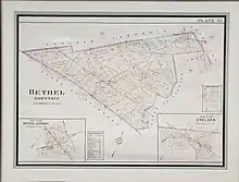 Bethel Township was the smallest of all the original townships of Chester County. The township is mentioned as early as 1683, and means "House of God".[3] In 1683, Edward Beazer and Edward Brown had 500 acres surveyed to them in the northeasterly end of the township. On this tract, Bethel hamlet, afterwards known as Corner Catch (Ketch), is the location of the current village of Chelsea.[4] In 1686, the road now known as Bethel Road was laid out from Bethel to Chichester (Marcus Hook).[5]