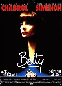 Betty is a 1992 French psychological drama film written and directed by Claude Chabrol, based on the 1961 novel of the same title by Georges Simenon. The film stars Marie Trintignant and Stéphane Audran, with Jean-François Garreaud, Yves Lambrecht, Christiane Minazzoli and Pierre Vernier. It was released in France on 19 February 1992 by MK2 Diffusion.[2]