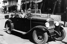 Bhakta Bir Singh in a Fiat in Kalimpong, ca 1949.