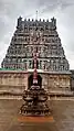 The temple[4] has a 5-tier rajagopuram and a vast temple complex. The prime deity, Bhaktavatsalar has an imposing image. The temple tank is situated right opposite to the temple and is considered one of the largest temple tanks in the state. This shrine is also referred to as Saptamrita Kshetram (seven celebrated elements of nature), referring to seven of its elements such as Vimanam, Mandapam, aaranyam, tirtham, kshetram, river and town.[2] The main entrance of the temple faces the East and at the entrance of the temple, there is a four pillared open hall. The temple has a 90 ft (27 m) tall rajagopuram (temple tower) and is enclosed by rectangular walls around it. There is a smaller temple tower on the western side. The walls of the temple is surrounded by large streets, through which the temple chariot passes along during festivals. A rare image of Buddha, image of Vaikunta Natha and Vishnu mounted on his eagle mount Garuda are the major images in the temple. There is a pillared hall leading to the shrine of Kannamangai Thayar shrine that has pillars with Nayak architectural representation.[2]