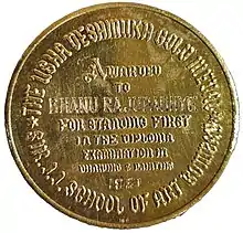 Gold Medal Awarded by JJ School of Art in 1951 - Verso