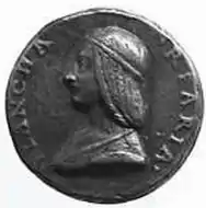 ![]() Bronze medallion of Bianca Riario made by goldsmith Niccolò Fiorentino | |