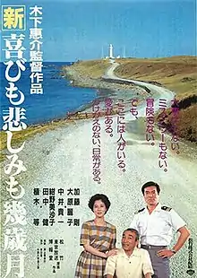 Big Joys, Small Sorrows (新・喜びも悲しみも幾歳月, Shin Yorokobi mo Kanashimi mo Ikutoshitsuki) is a 1986 Japanese film directed by Keisuke Kinoshita, revisiting his melancholic earlier work, Times of Joy and Sorrow (1957), of a lighthouse keeper and the transient lifestyle he and his family endure. Shot at 10 different lighthouses, four temples, and various scenic locations (including two of the famous Three Views of Japan (日本三景)), spanning the length of Japan from Kyushu to Hokkaido, the film serves a secondary purpose as an insightful time capsule travelogue of early 1980s Japan.[1][2] It is Kinoshita's 48th[3] and last film.[4]