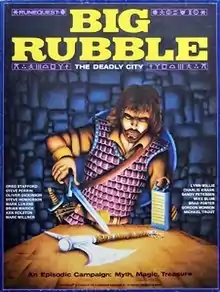 Big Rubble: The Deadly City is a boxed tabletop role-playing game supplement for RuneQuest. Originally published by Chaosium in 1983. It was republished in 1999 by Moon Design Publications in a single volume with Pavis: Threshold to Danger as Gloranthan Classics Volume I – Pavis & Big Rubble .[1] The 1983 edition was republished in 2019 in PDF format as part of Chaosium's RuneQuest: Classic Edition Kickstarter.[2]