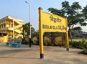Bikkavolu is an Indian Railways station at Bikkavolu, a village in East Godavari district of Andhra Pradesh. It lies on the Vijayawada–Chennai section and is administered under Vijayawada railway division of South Coast Railway zone. Eleven trains halt in this station every day. It is the 2140th-busiest station in the country.[2]