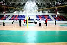 The sports centre, whose construction was completed towards the end of 2008, is one of the biggest and most modern high school gyms in Turkey with its outstanding architecture and its 6400m² closed area. It is a two-storey building with upper floor facilities situated in a 28 m2 area that allows the school community to play many sports. The grandstand on the first floor has a capacity of 750 people. On the first floor, there are fitness machines and facilities for wrestling, boxing, martial arts etc. There are, in addition, 2 squash courts on the first floor. The baskets on the second floor fold and meet FIBA standards. The area on the second floor can be divided into two with an automatic curtain, which allows two groups or classes to use the hall simultaneously.