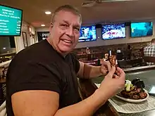William Simmons (born November 1, 1961), known as El Wingador, is a competitive eater, author, entrepreneur, speaker and former member of the International Federation of Competitive Eating (IFOCE). Simmons achieved notoriety after winning Philadelphia's Sports Radio 94 WIP's Wing Bowl in January, 1999. Simmons eventually went on to win the competition five times (Wing Bowl IX, X, XI and XIII) between 1999 and 2005,[1] becoming the only eater in Wing Bowl history to accomplish that feat. During Wing Bowl 14 in February 2006, Simmons' was inducted into the Wing Bowl Hall of Fame, and his name appears on a banner in the rafters at Philadelphia's Wells Fargo Center, the site of Wing Bowl since Wing Bowl VIII in 2000. At the peak of his eating prowess, Simmons stood at 6’5” and weighed 290 pounds.[2]